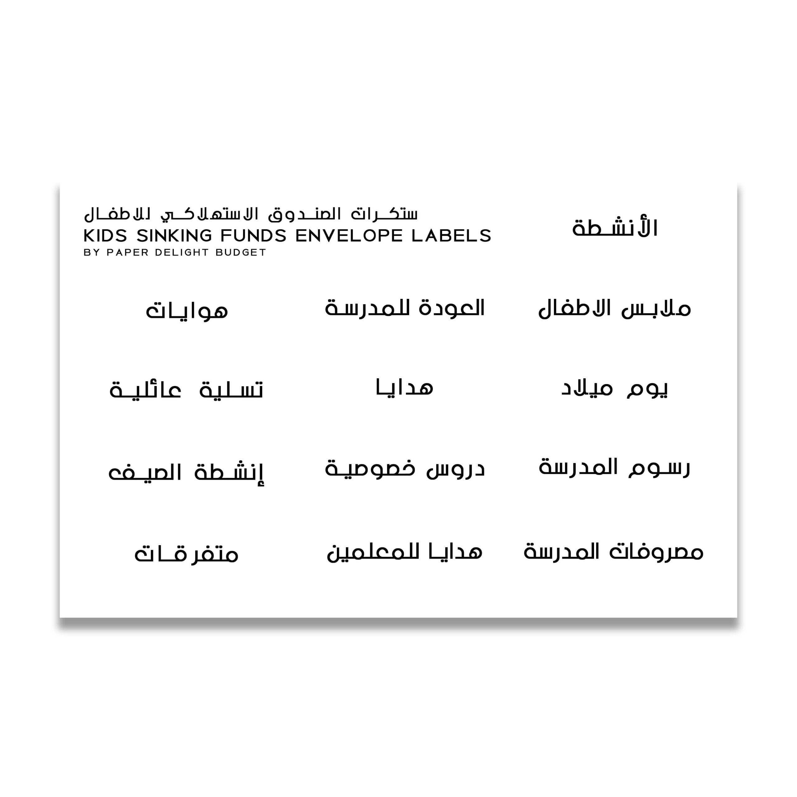 Kids Sinking Funds envelope labels | ستكرات الصندوق الاستهلاكي للاطفال